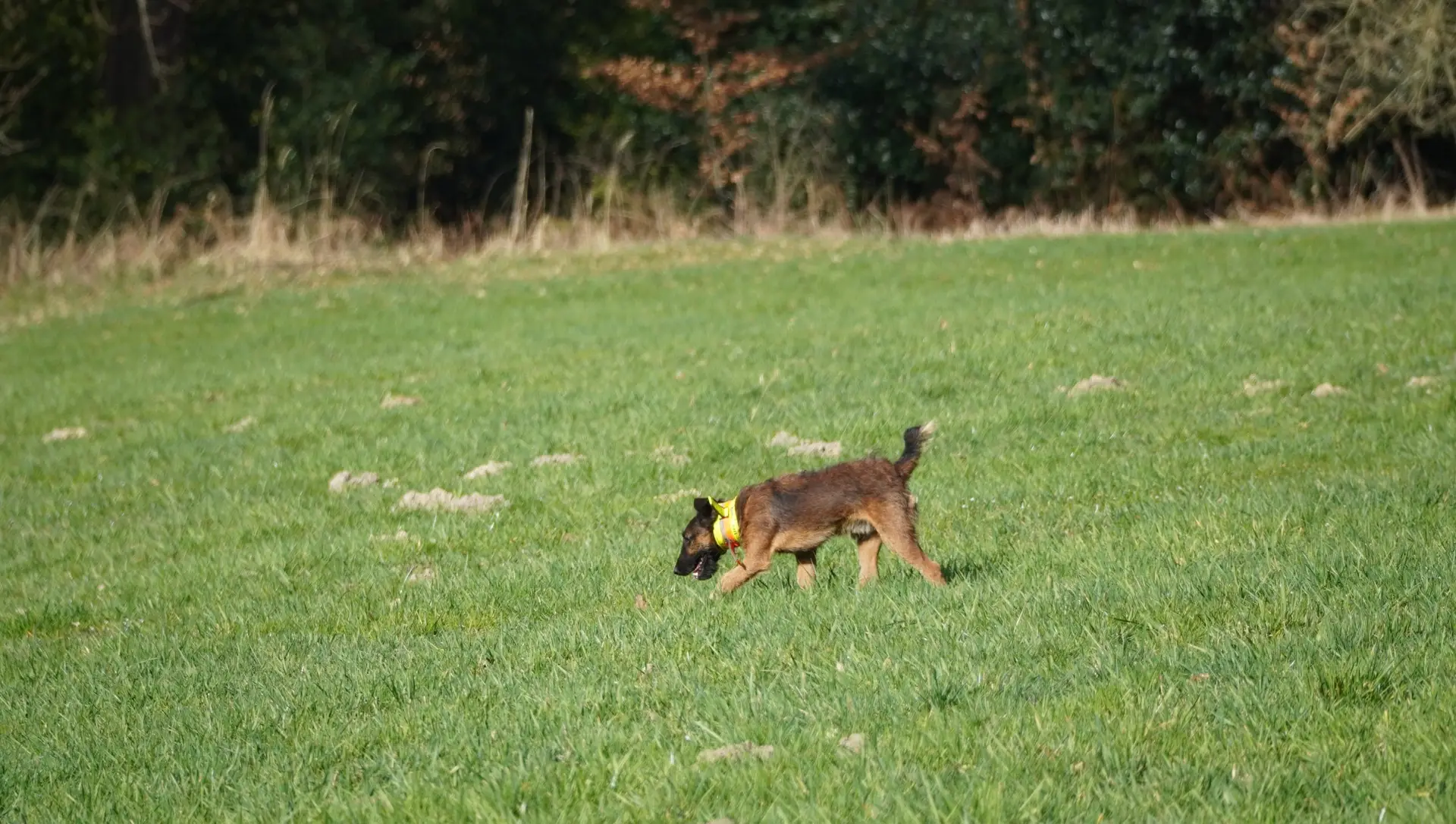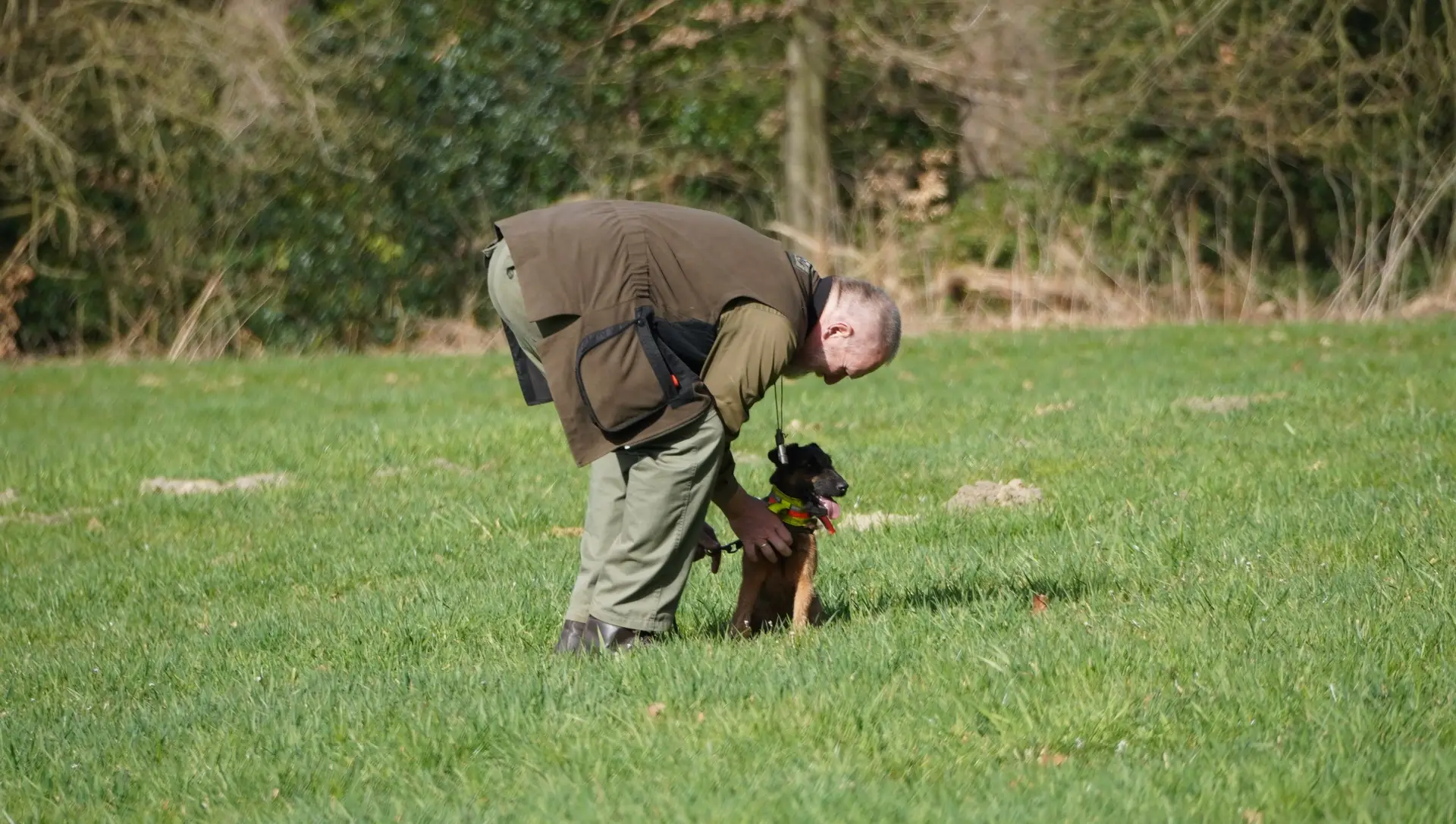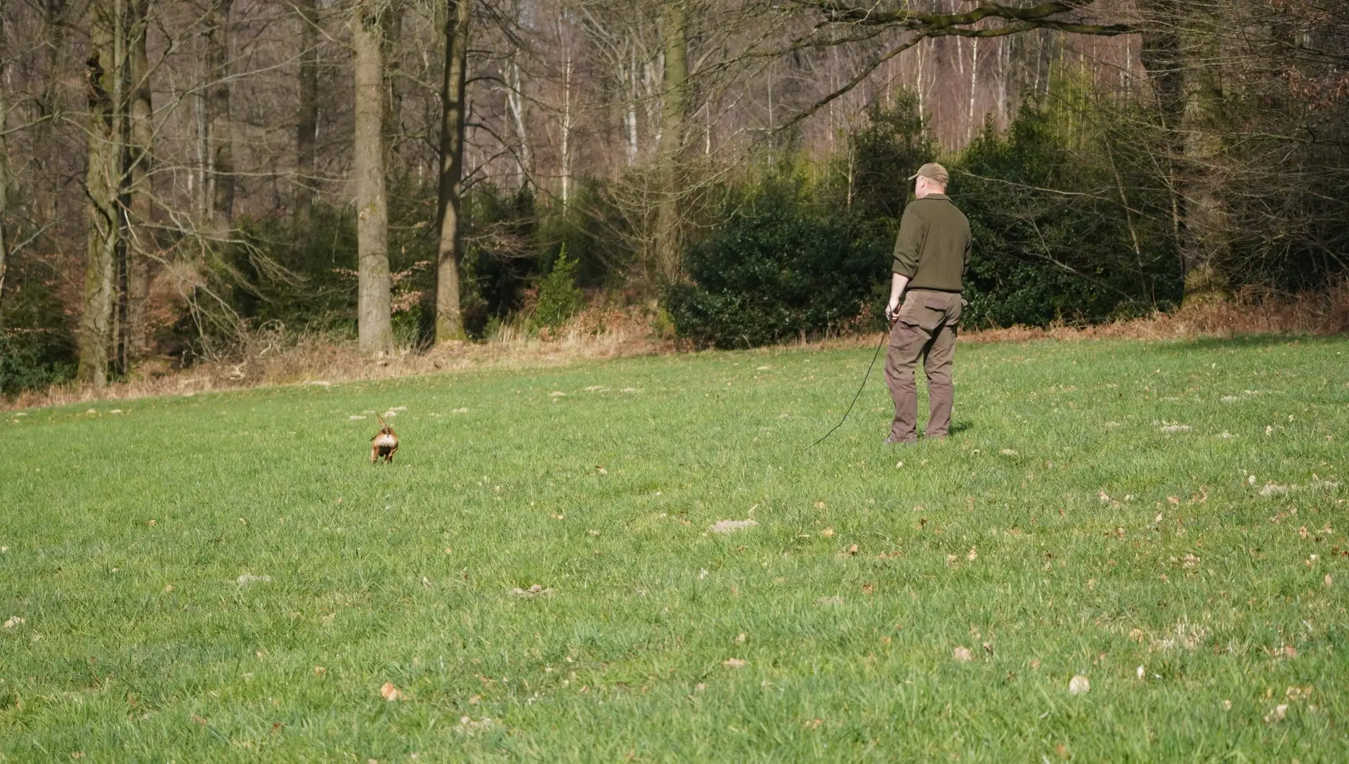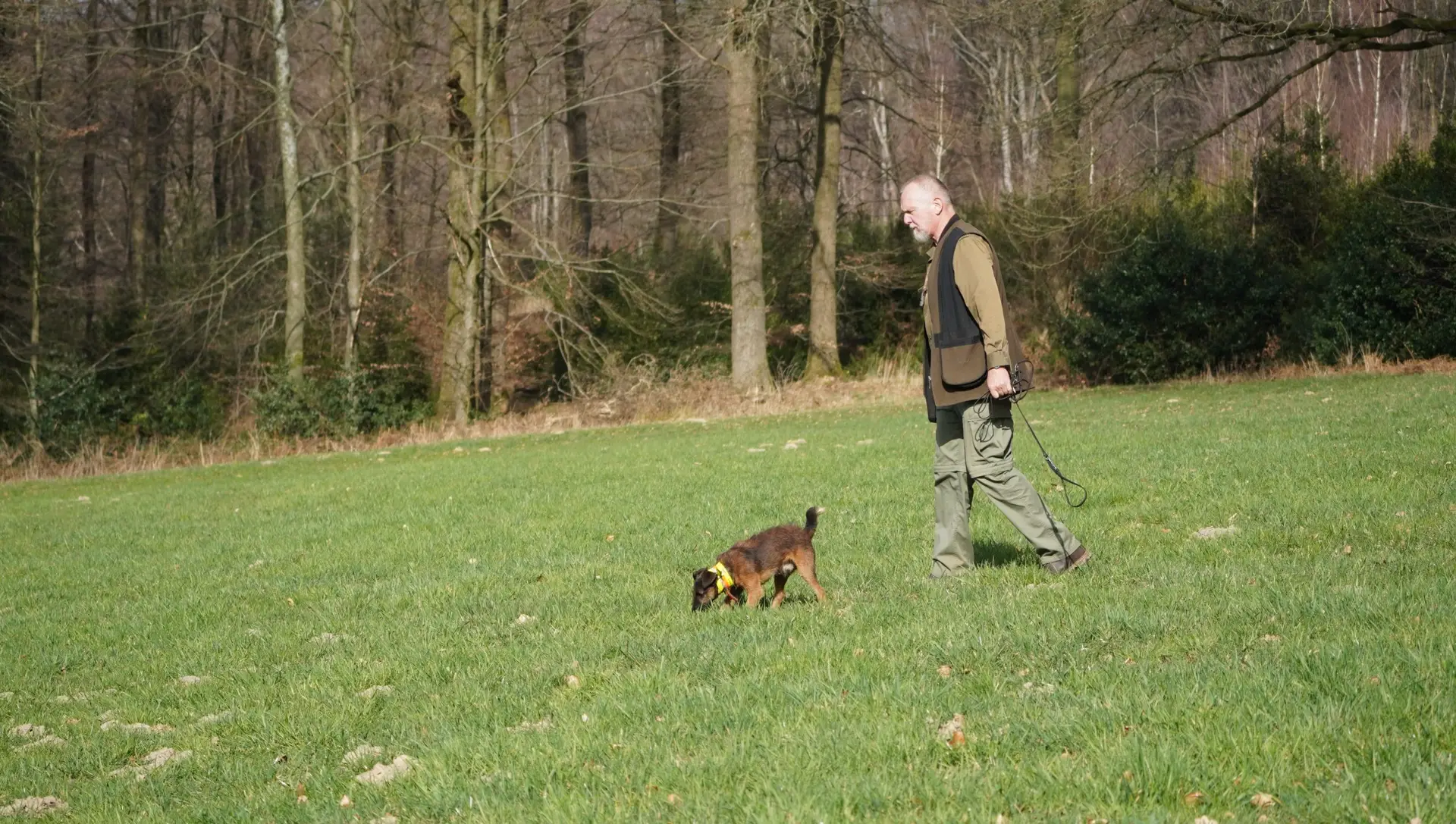 Im von Holger Strüning zur Verfügung gestellten Revier boten sich wieder ausgezeichnete Bedingungen für die Durchführung der Veranstaltung. Zunächst wurden die Hunde mit dem Procedere der Zuchtschaubewertung vertraut gemacht. Im Anschluss konnten die jungen Hunde erste Erfahrungen an einer Schliefenröhre machen. Zum Üben des Ablaufs der Schussfestigkeit ging es auf eine nahegelegene Wiese und auch die Arbeit auf einer Hasenspur wurde dort geübt. Ein großes Lob gab es für alle Hunde, die einen hervorragenden Grundgehorsam zeigten.