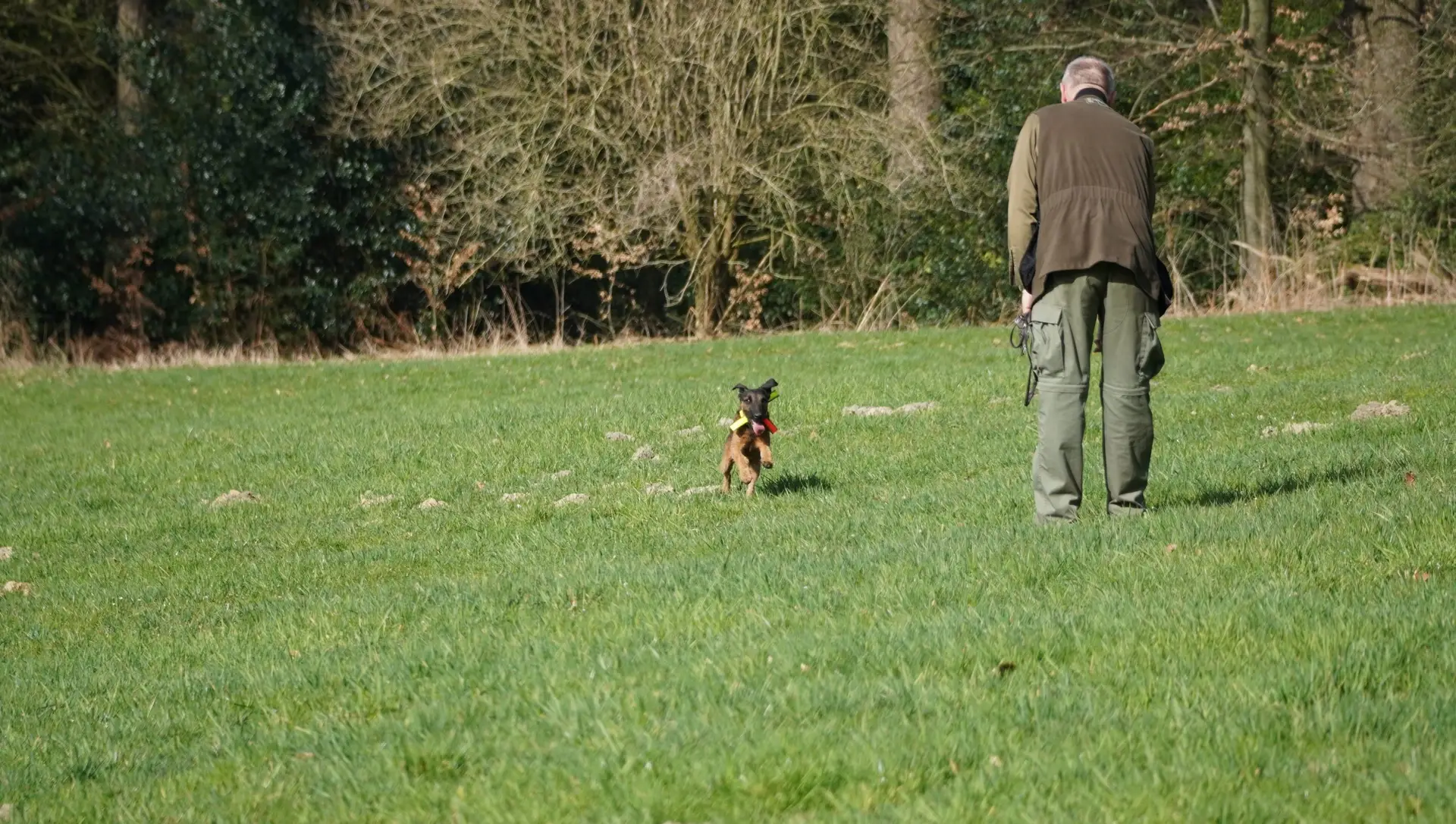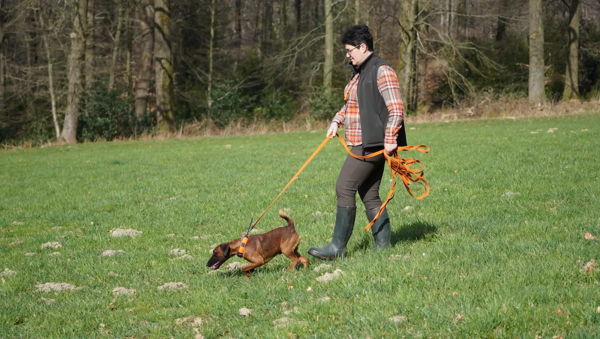 Bei angenehmen Temperaturen um die 16 Grad und bestem Wetter begrüßten die Übungsleiter Holger Strüning und Marcel Hebbeler 6 Teilnehmer und ihre Begleitung. Alfred vom Hahnenkräher mit Michaela Schmitz, Asta-Lea vom Hahnenkräher mit Volker Kölbach, Dolores von der Dautphe mit Vera Röttger, Berta vom Bauerbruch mit Frederik Schlotzhauer, Casper vom Weskerhok mit Agnes Brammen und Levin mit Christoph Weid absolvierten mit großer Begeisterung und Engagement die verschiedenen Aufgaben.