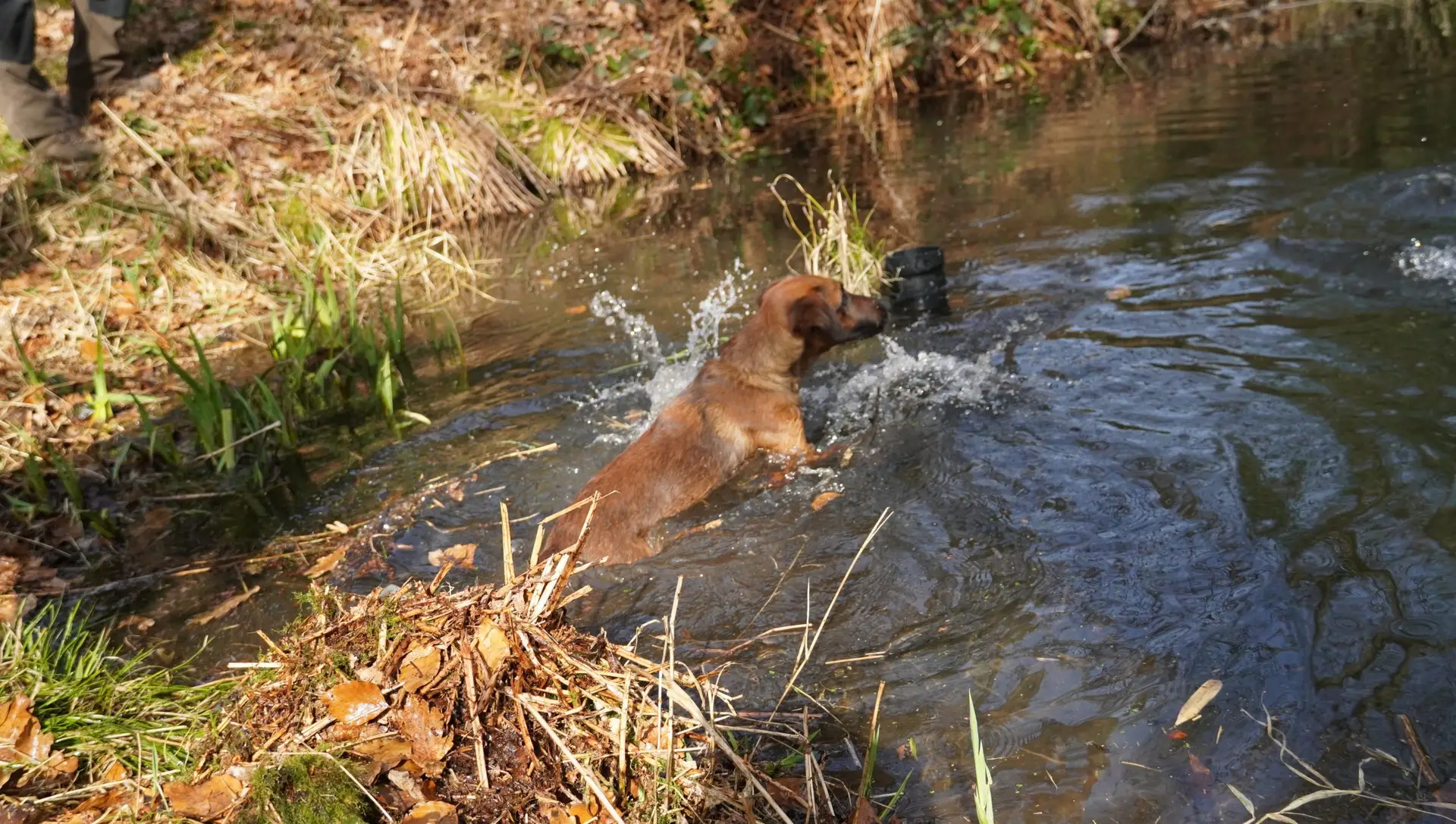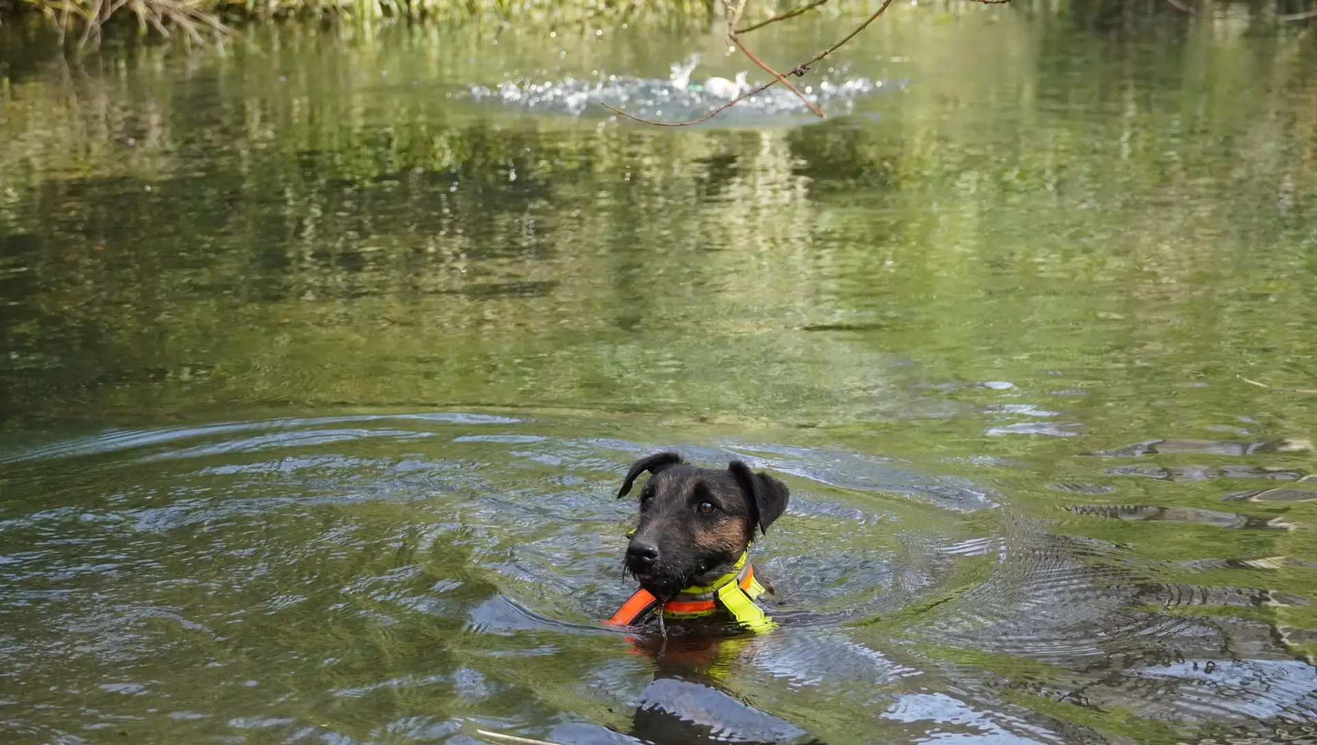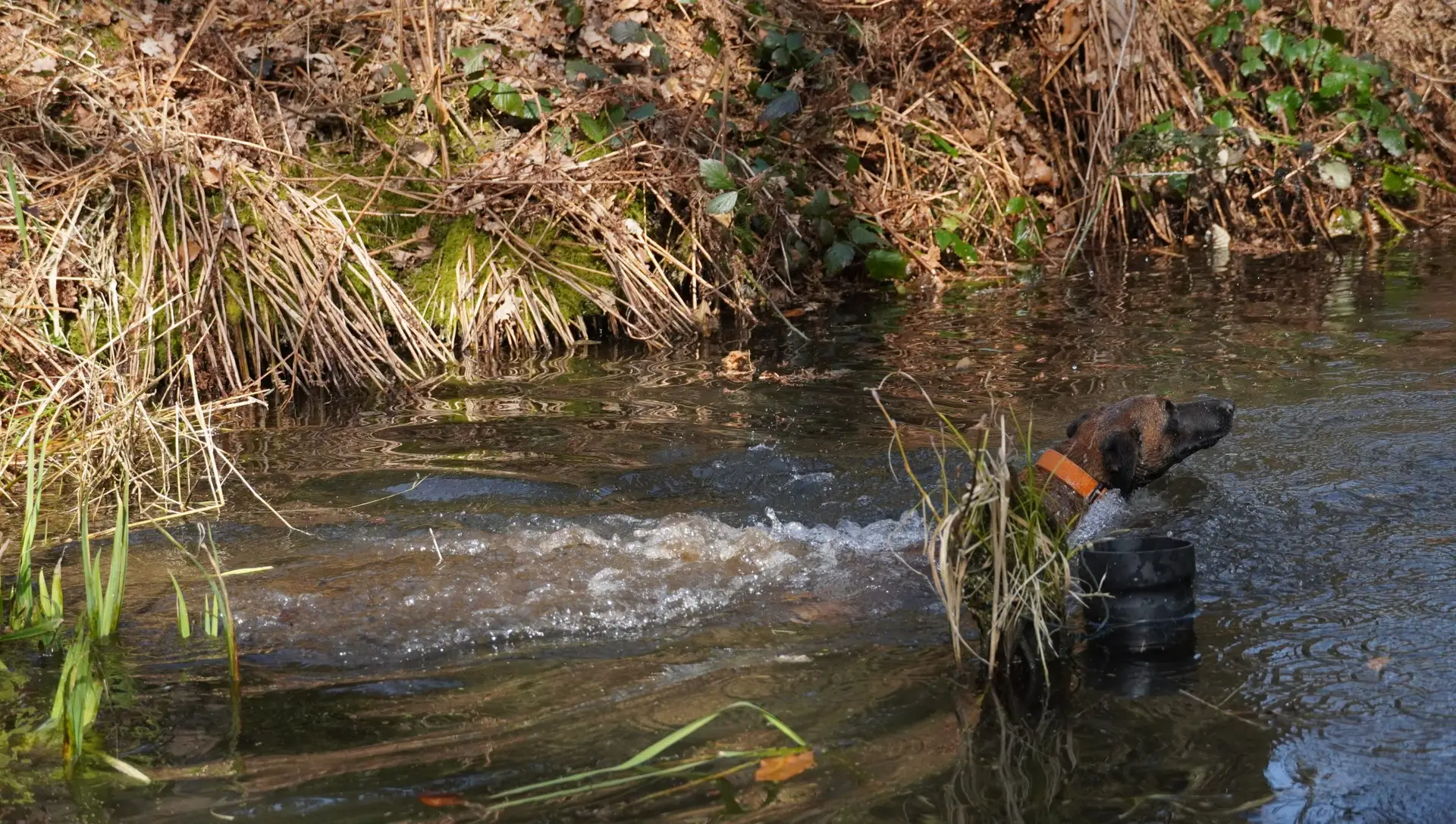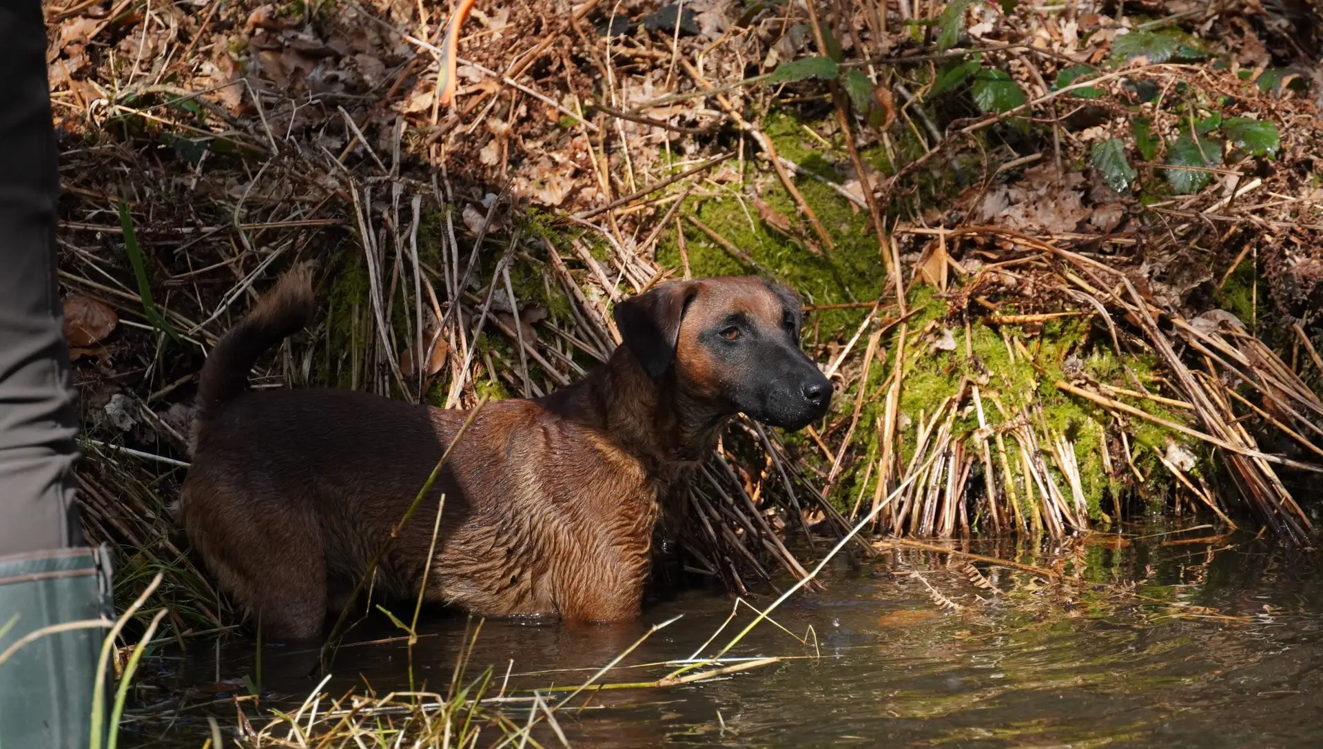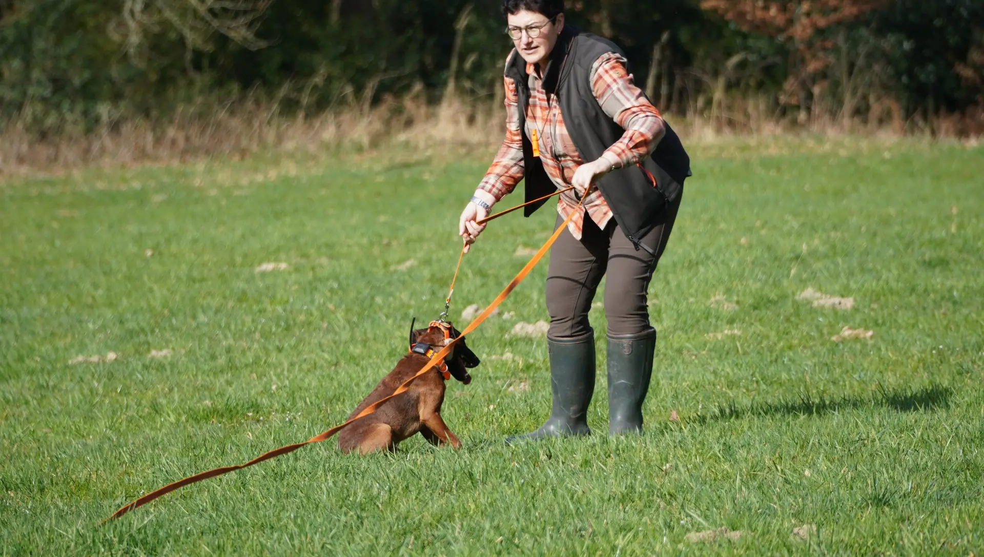 Bestandteile des Übungstages waren diesmal das Training für die Zuchtschaubewertung, das Üben des Ablaufs für die Schussfestigkeit und an der Hasenspur, sowie eine Eingewöhnung an die Schliefenanlage und das Training am Wasser.