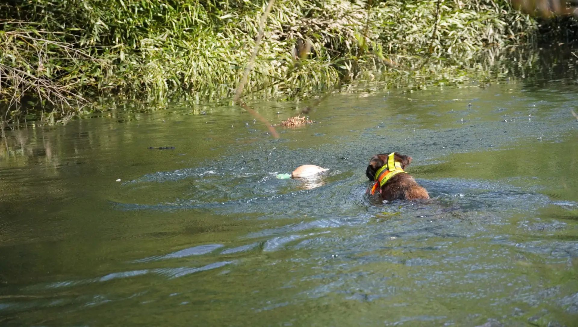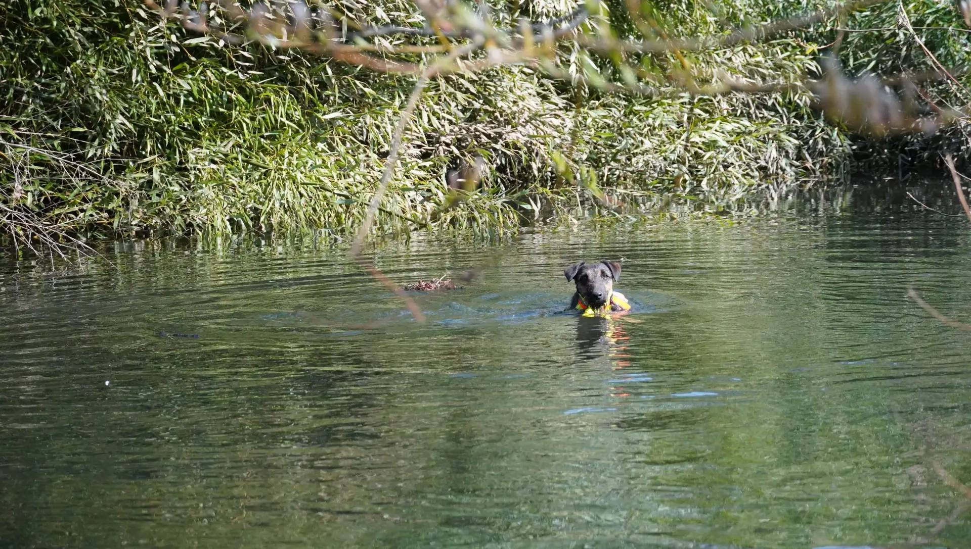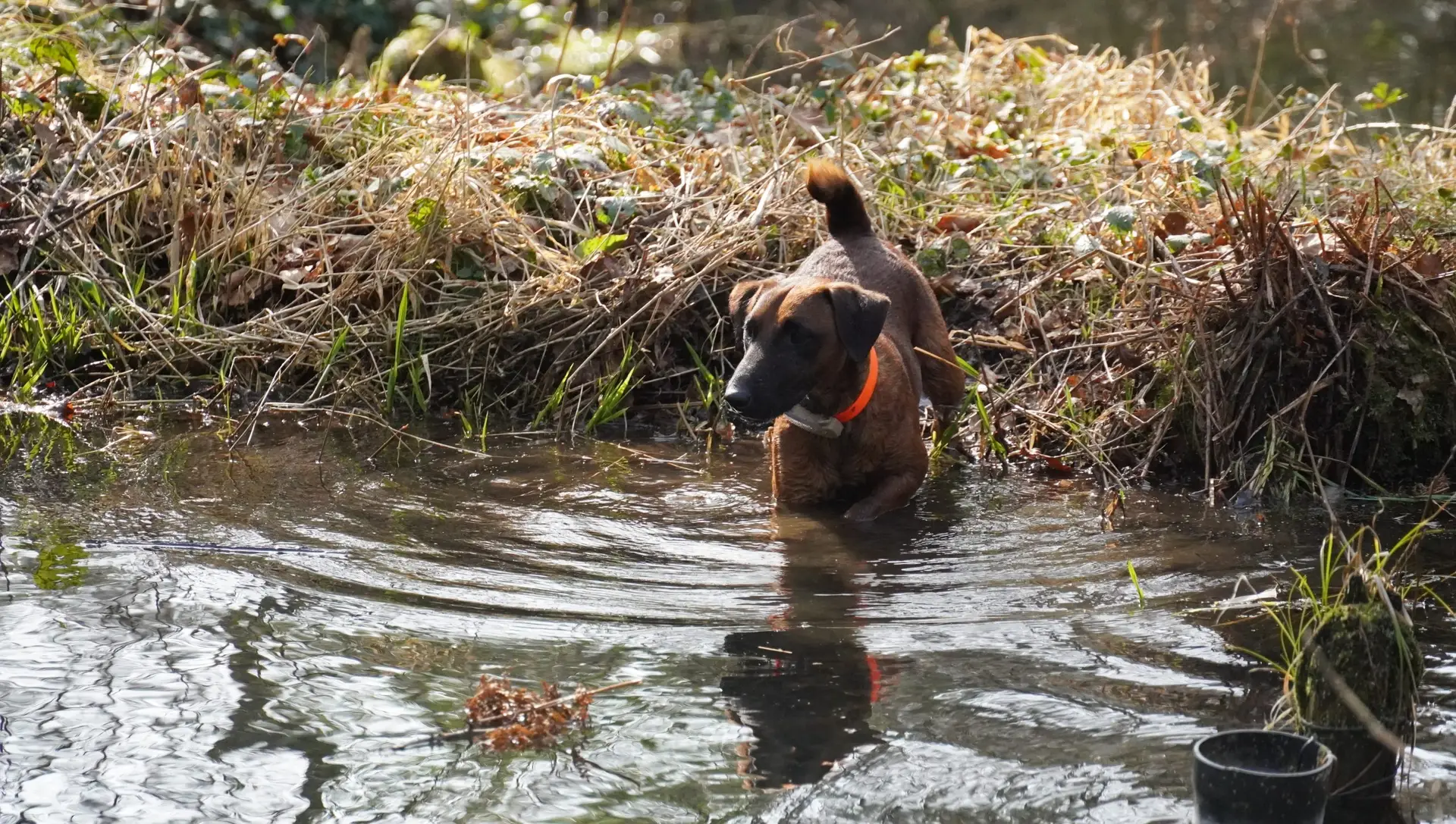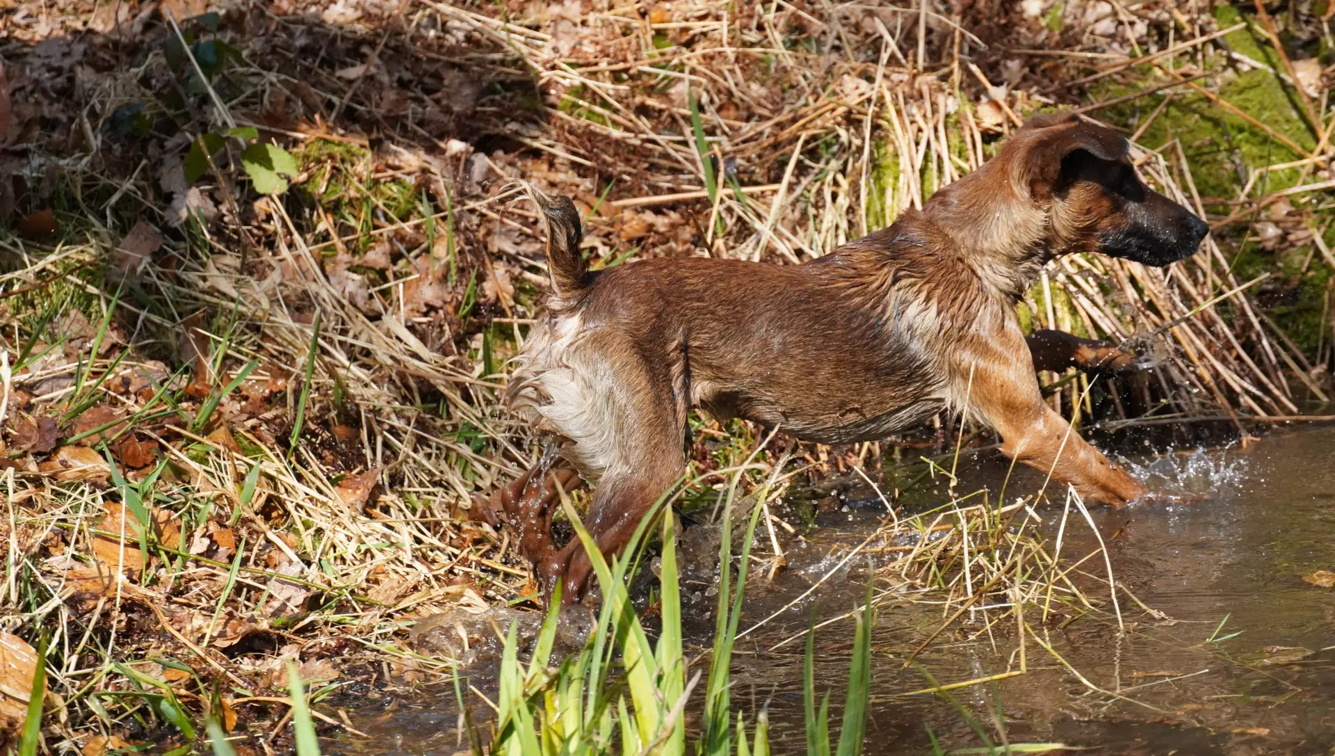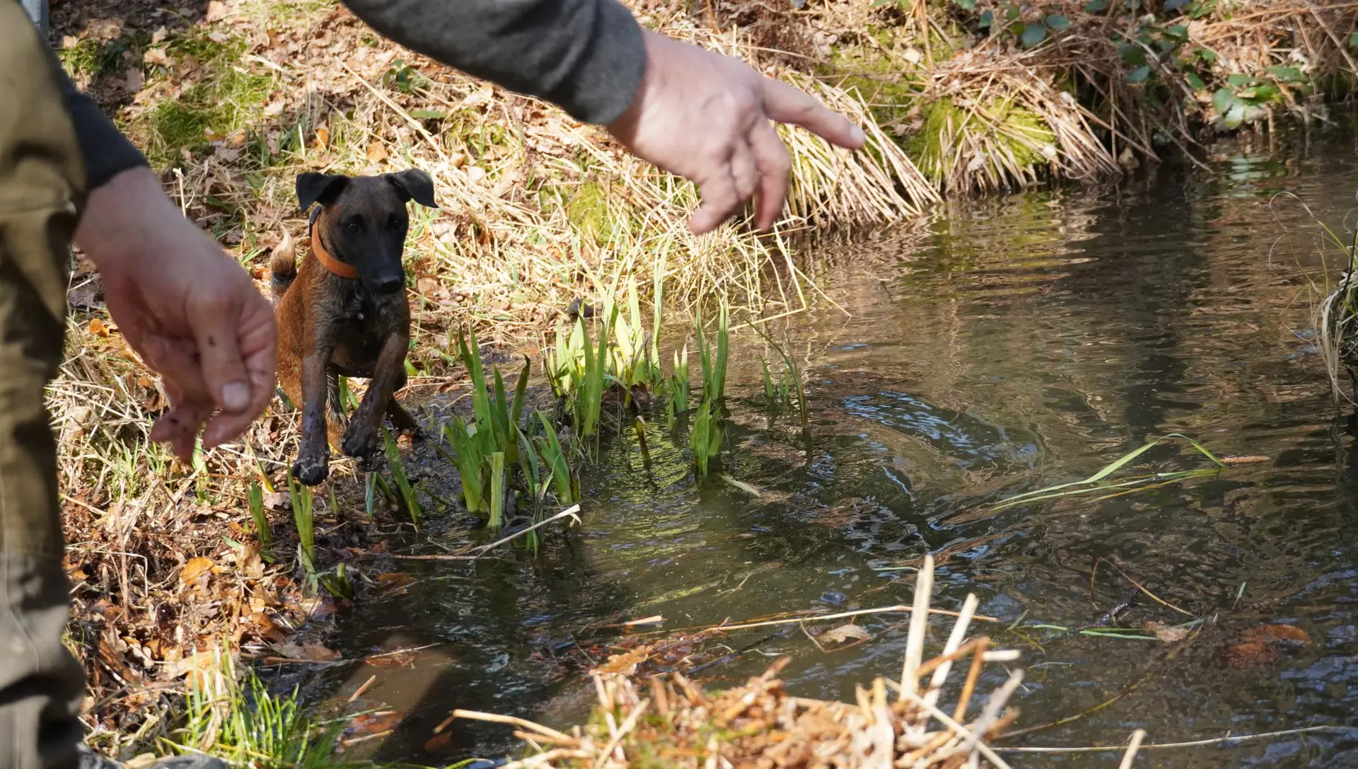 Bestandteile des Übungstages waren diesmal das Training für die Zuchtschaubewertung, das Üben des Ablaufs für die Schussfestigkeit und an der Hasenspur, sowie eine Eingewöhnung an die Schliefenanlage und das Training am Wasser.