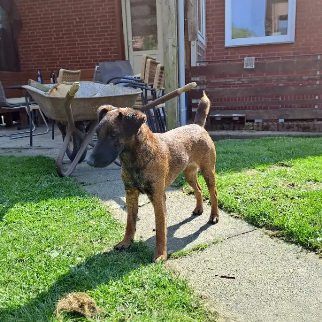 Für Berta wird möglichst bis spätestens zum Frühjahr 2026 ein neues Revier gesucht. Die Hündin wird im jagdlichen Einsatz auf Drückjagden und Niederwild geführt.