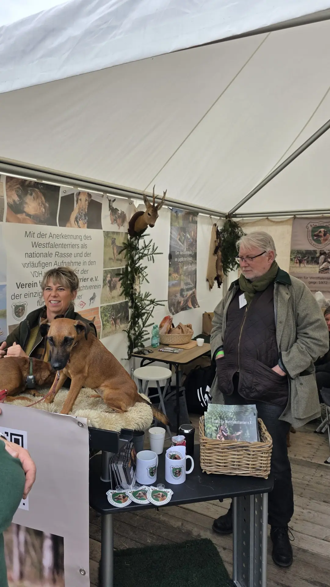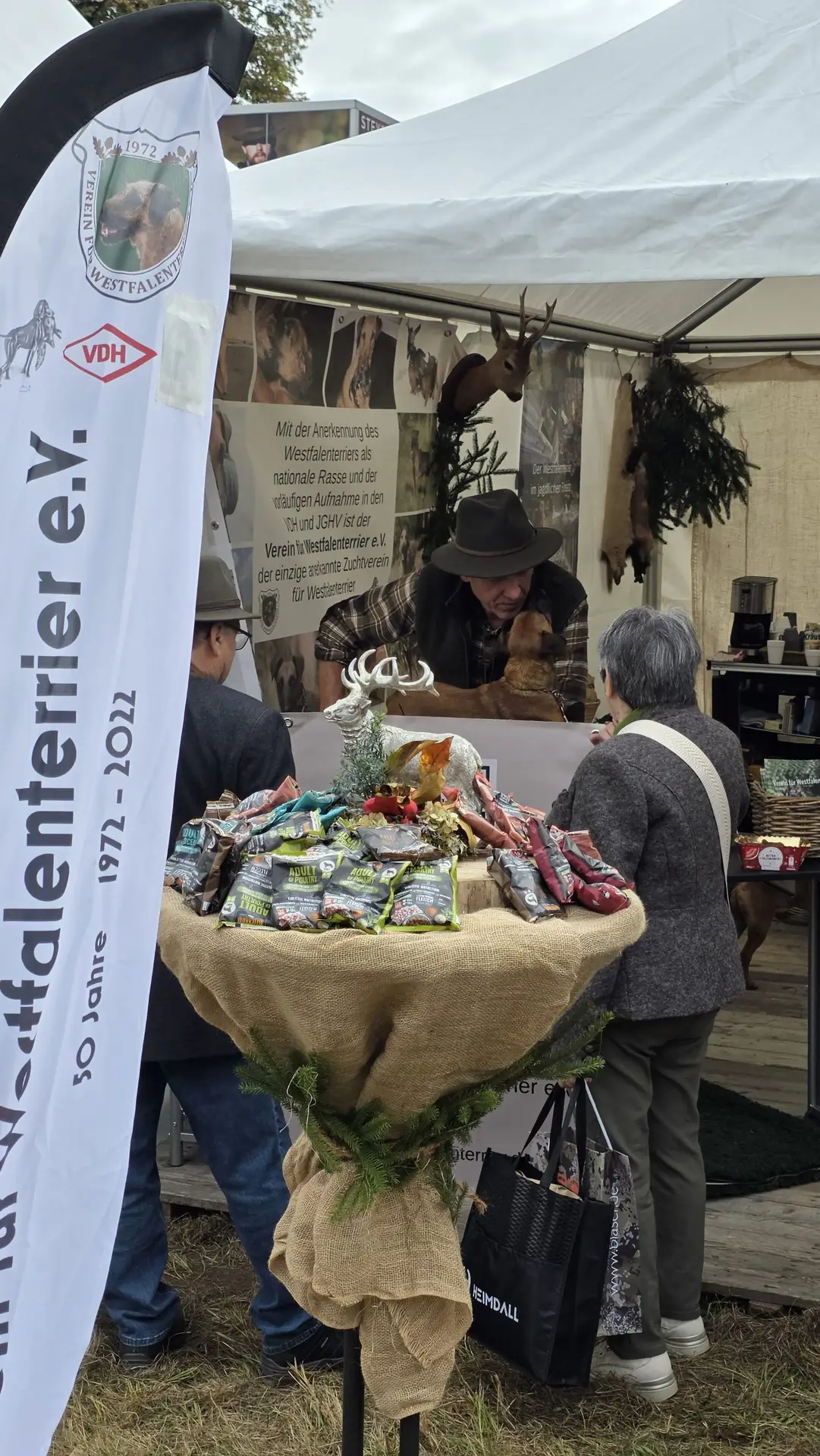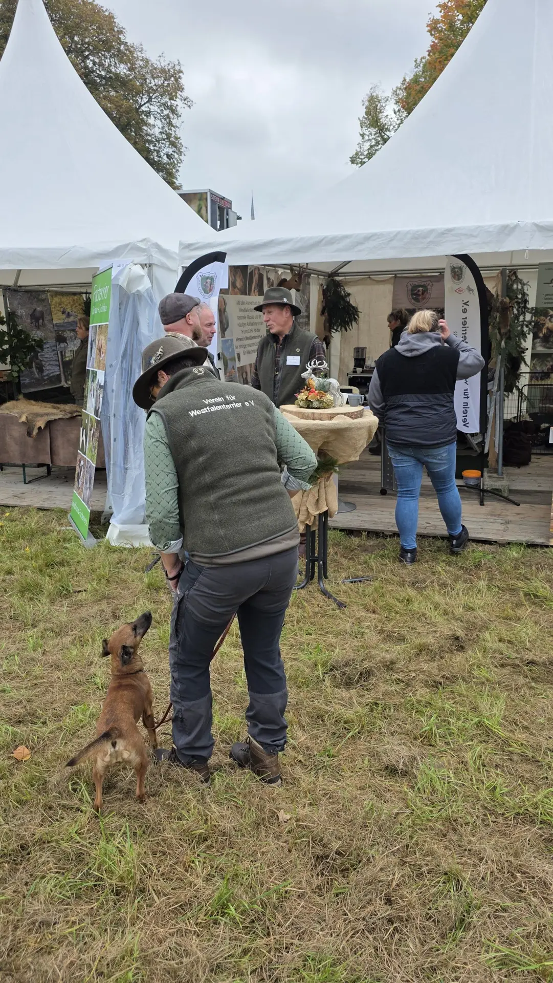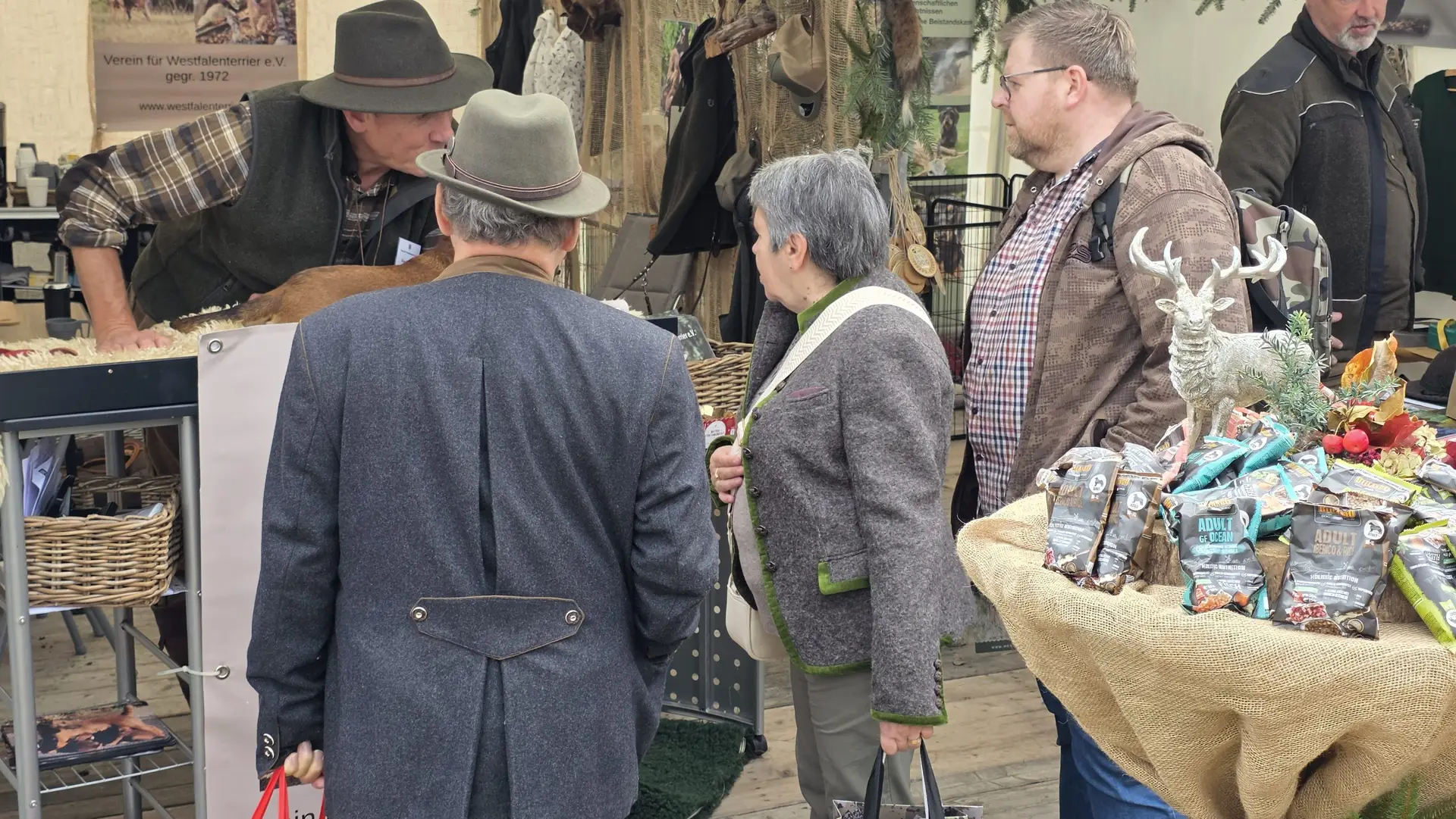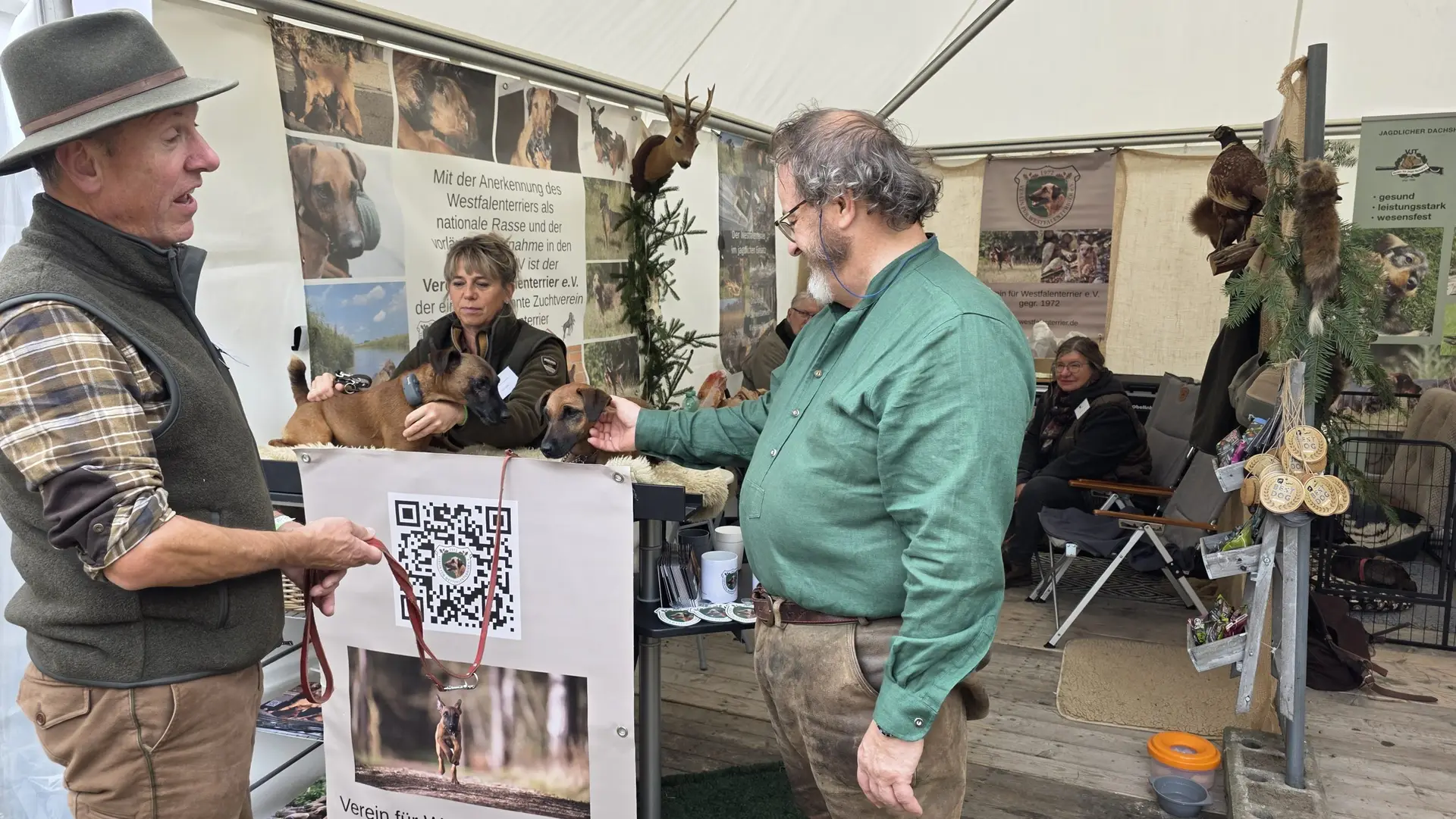 Es stellte sich abermals heraus, dass der Westfalenterrier in der Jägerschaft seinem Ruf gerecht wird und hohes Ansehen genießt. Die überzeugende Arbeit unserer kleinen Jagdhelfer bewirkt somit eine große Nachfrage nach Welpen. Mit unseren zahlreichen Standbesuchern haben wir intensive Gespräche geführt, wobei das Messeteam aus dem reichen Erfahrungsschatz in der Arbeit mit unseren Hunden Rede und Antwort stand. Ein wichtiges Thema war unseren Interessenten die durch unseren Verein erlangte Zulassung unserer Hunde zu den Verbandsprüfungen des JGHV aufgrund der – aktuell noch vorläufigen – Mitgliedschaft im VDH und JGHV.