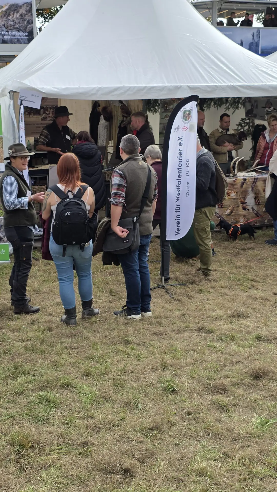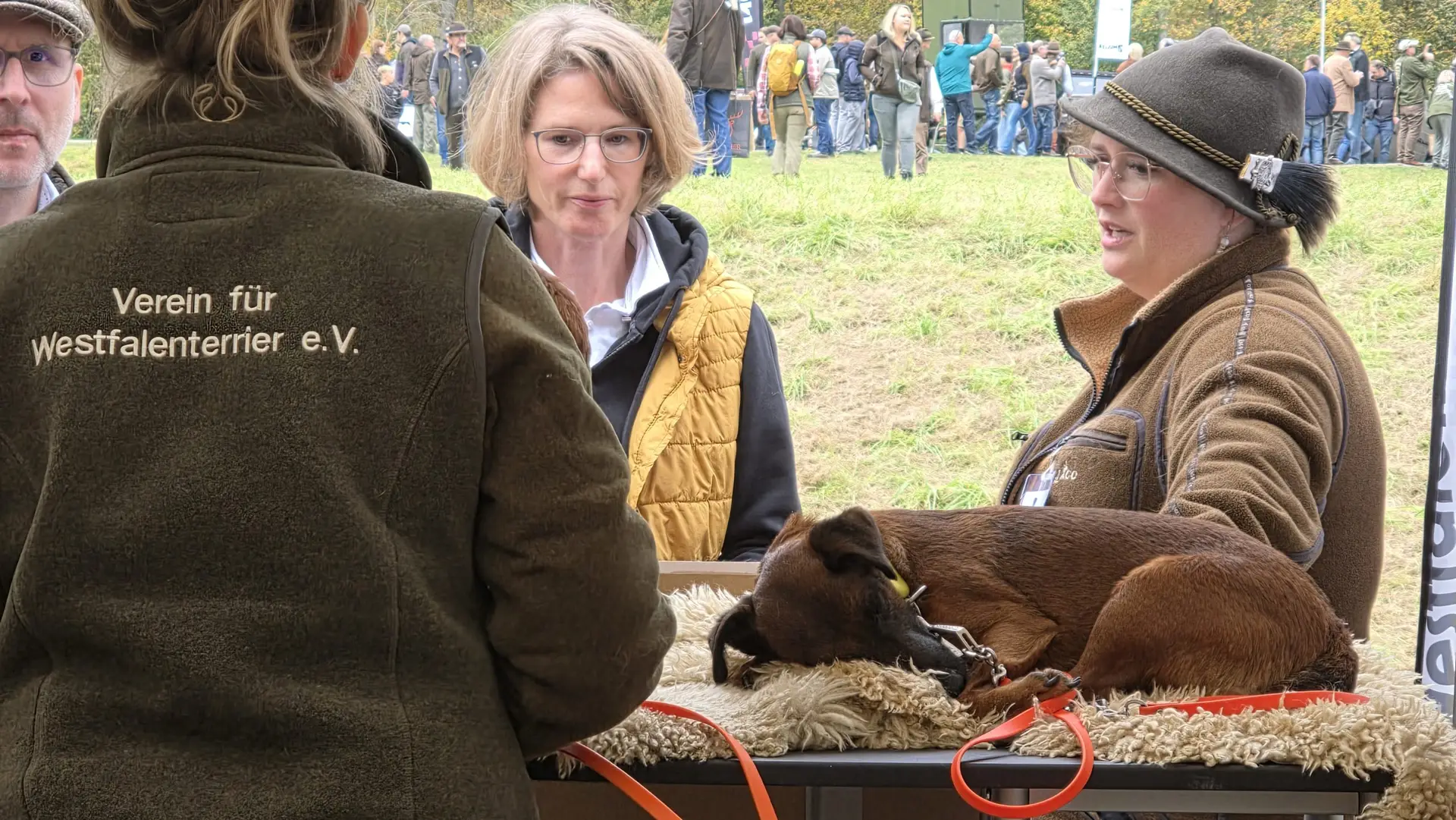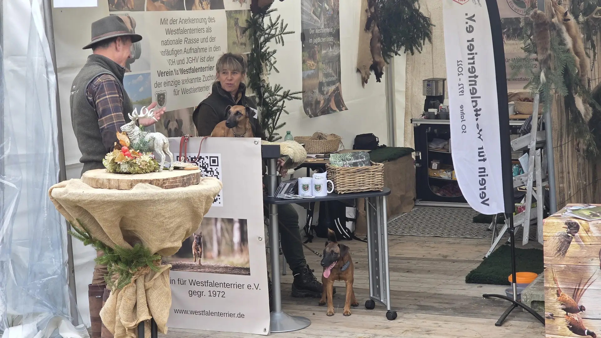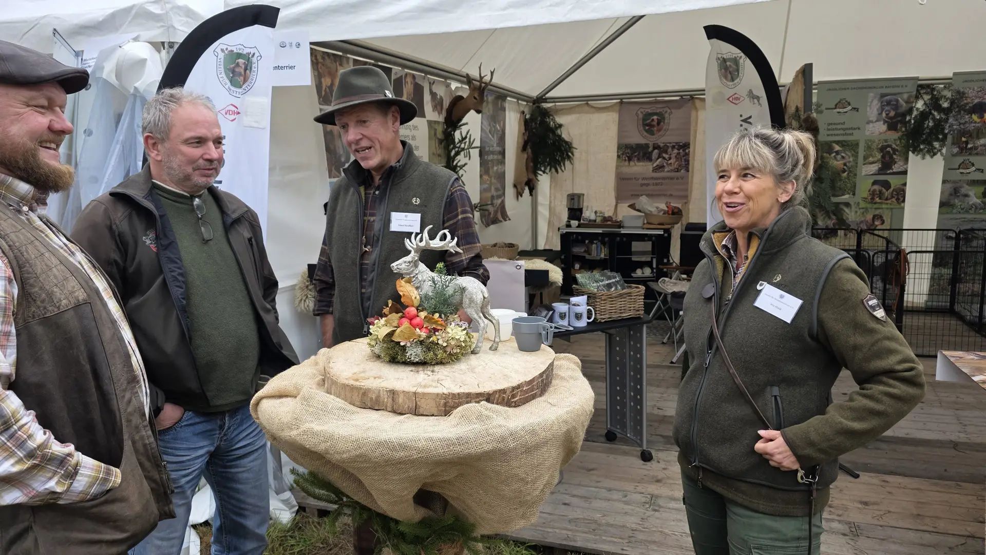 Es stellte sich abermals heraus, dass der Westfalenterrier in der Jägerschaft seinem Ruf gerecht wird und hohes Ansehen genießt. Die überzeugende Arbeit unserer kleinen Jagdhelfer bewirkt somit eine große Nachfrage nach Welpen. Mit unseren zahlreichen Standbesuchern haben wir intensive Gespräche geführt, wobei das Messeteam aus dem reichen Erfahrungsschatz in der Arbeit mit unseren Hunden Rede und Antwort stand. Ein wichtiges Thema war unseren Interessenten die durch unseren Verein erlangte Zulassung unserer Hunde zu den Verbandsprüfungen des JGHV aufgrund der – aktuell noch vorläufigen – Mitgliedschaft im VDH und JGHV.