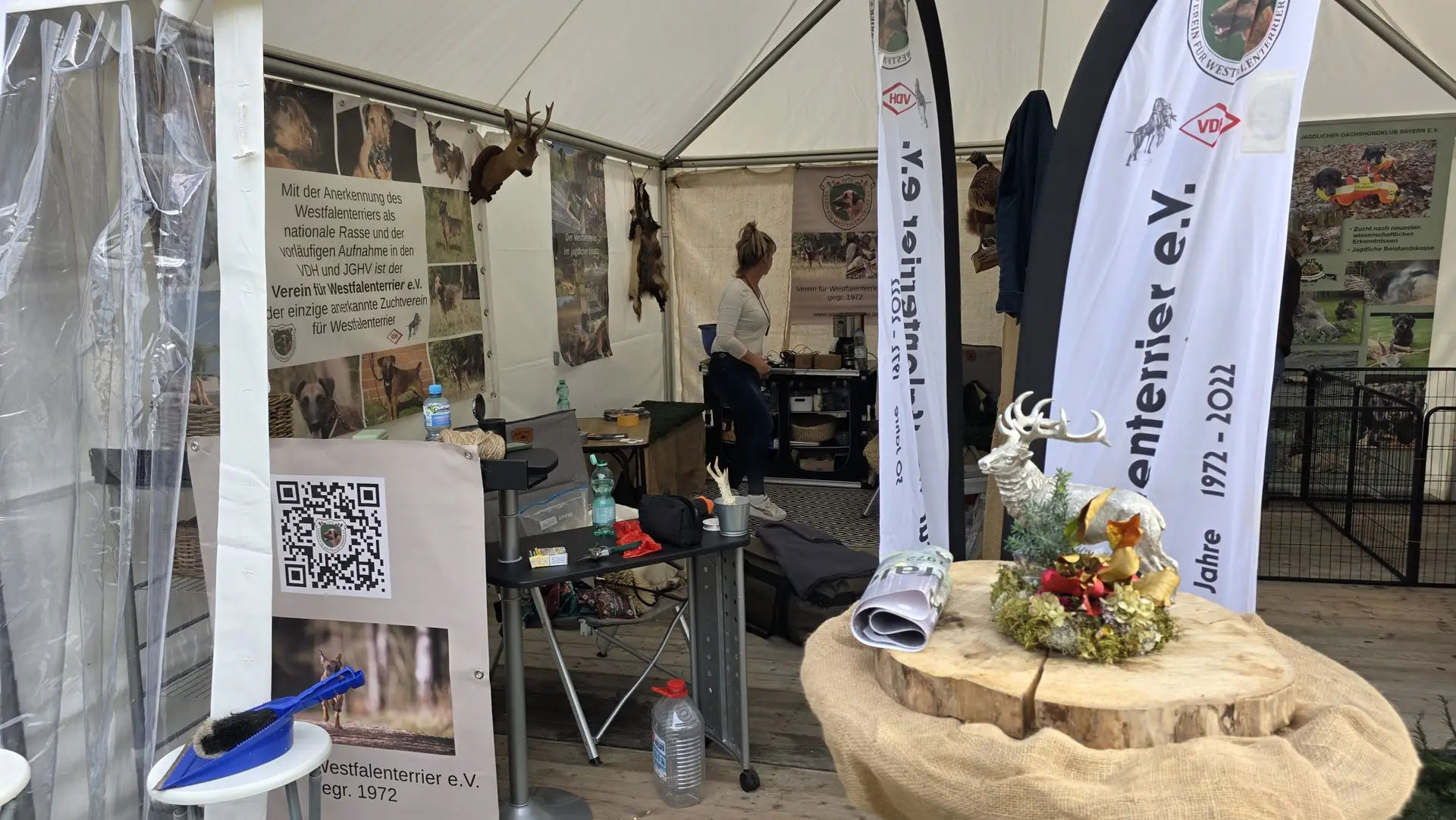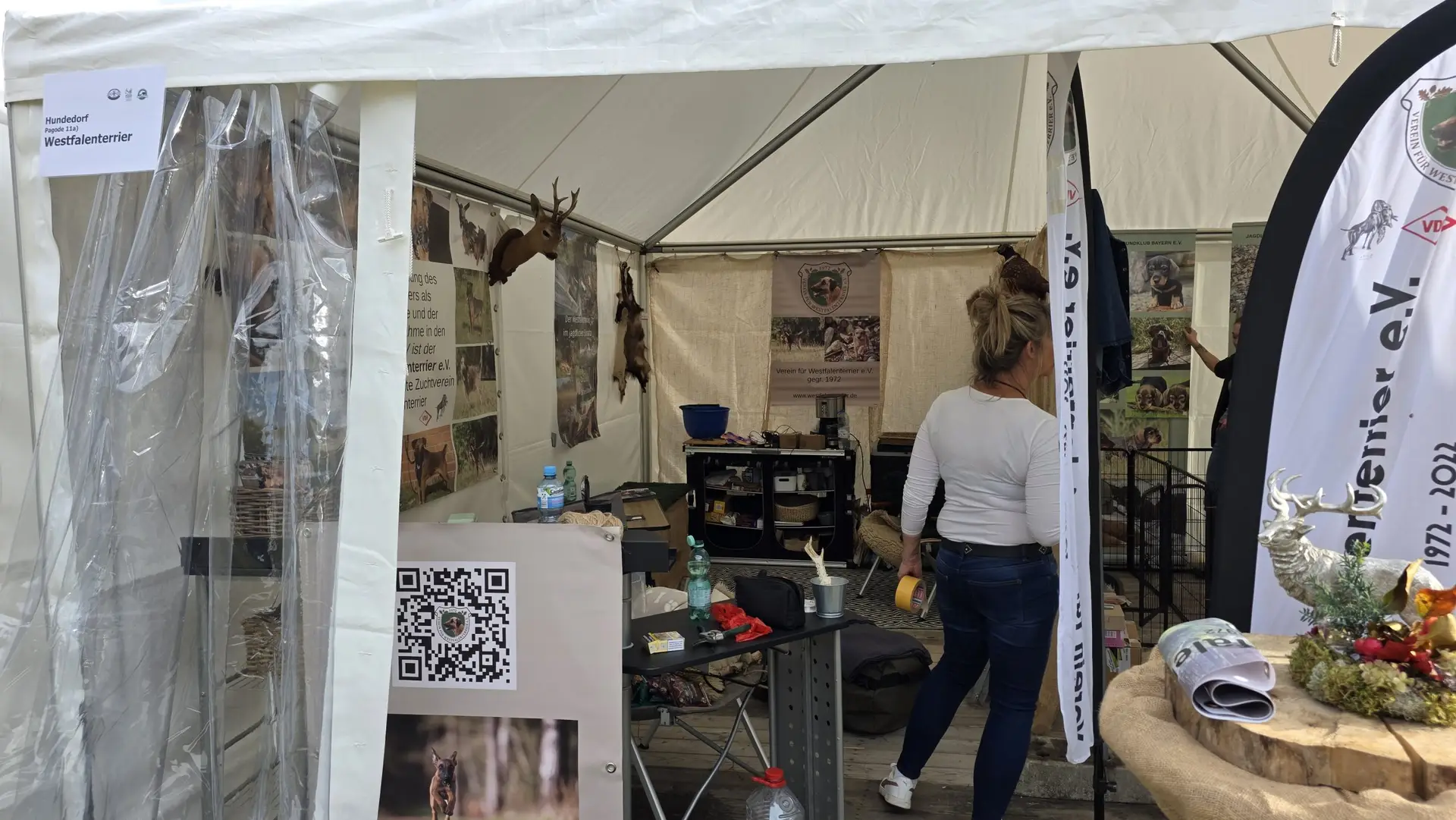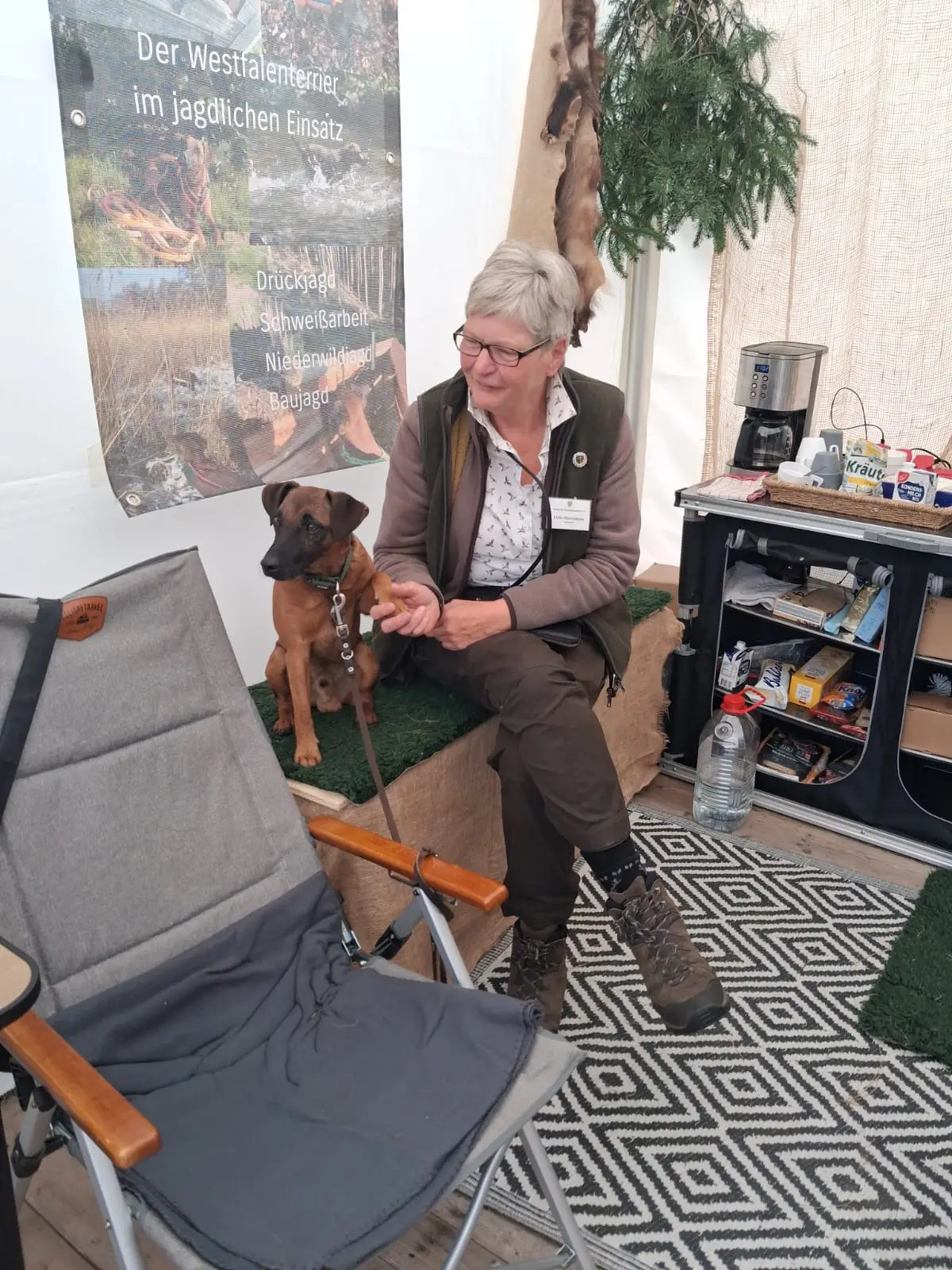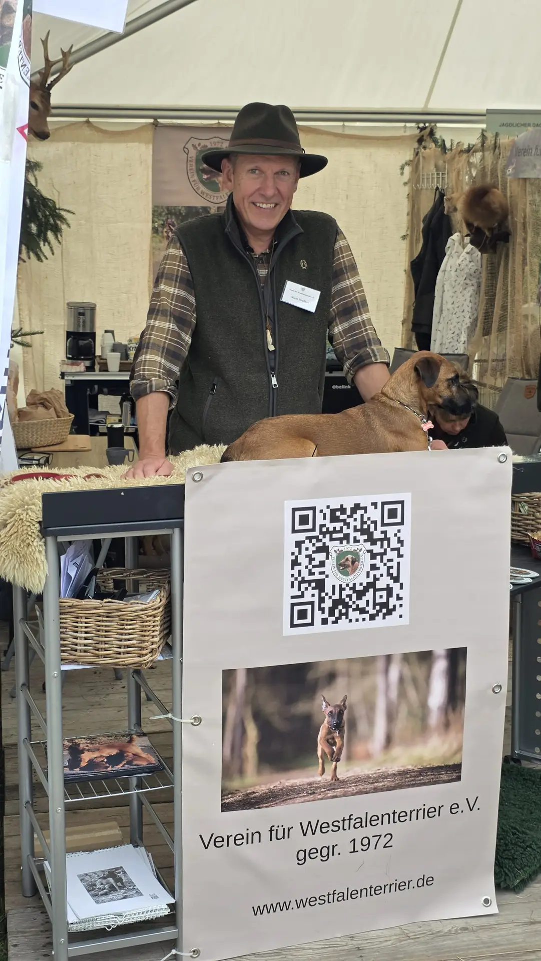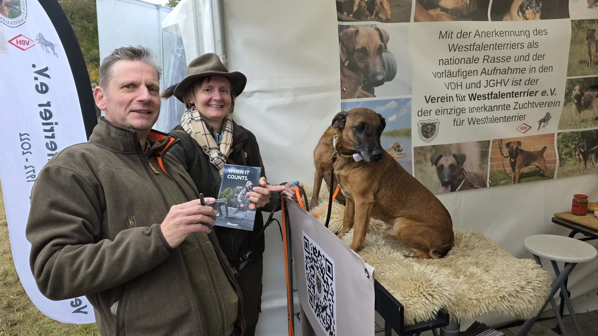 Es stellte sich abermals heraus, dass der Westfalenterrier in der Jägerschaft seinem Ruf gerecht wird und hohes Ansehen genießt. Die überzeugende Arbeit unserer kleinen Jagdhelfer bewirkt somit eine große Nachfrage nach Welpen. Mit unseren zahlreichen Standbesuchern haben wir intensive Gespräche geführt, wobei das Messeteam aus dem reichen Erfahrungsschatz in der Arbeit mit unseren Hunden Rede und Antwort stand. Ein wichtiges Thema war unseren Interessenten die durch unseren Verein erlangte Zulassung unserer Hunde zu den Verbandsprüfungen des JGHV aufgrund der – aktuell noch vorläufigen – Mitgliedschaft im VDH und JGHV.