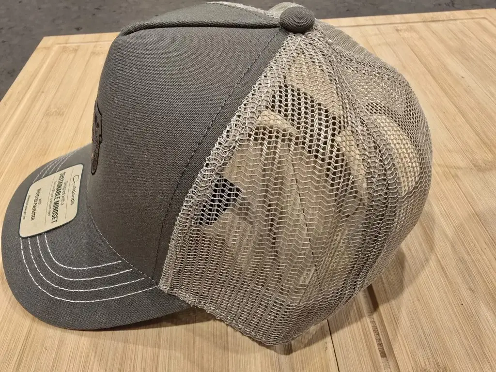 Canvas Cap mit 5 Segmenten, leicht gebogenem Schirm mit 4 Ziernähten, Mesh hinten