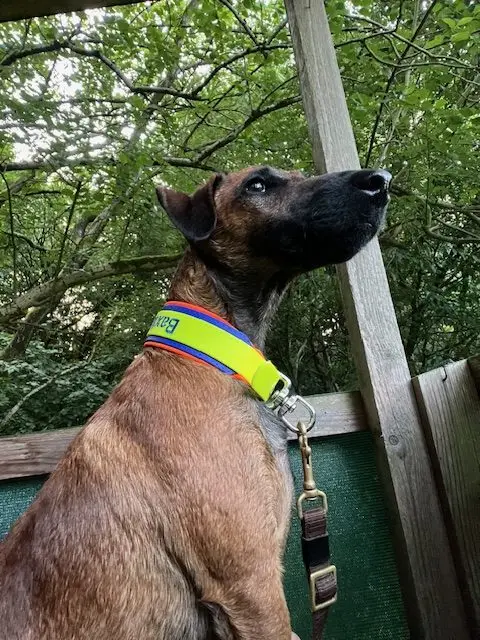 Baxter ist ein junger selbstsicherer kräftiger Rüde. Er hat ein ruhiges, ausgeglichenes Wesen und ist sozialverträglich. Zu Mensch und anderen Hunden ist er freundlich und dabei sehr kinderlieb. Er lebt mit Familienanschluss (sehr verschmust) und unser 5-jährigen Westfalenterrierhündin gemeinsam im Haus.