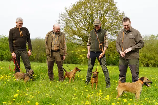 3 Generationen einer Zuchtlinie (von links nach rechts): Großmutter Biene vom Steinbachtal mit Thomas Strelow, Mutter Debbie vom Steinbachtal mit Thomas Breuer sowie Athene vom Bauerbruch mit Klaus Struffert und Atze vom Bauerbruch mit Benno Hansen.