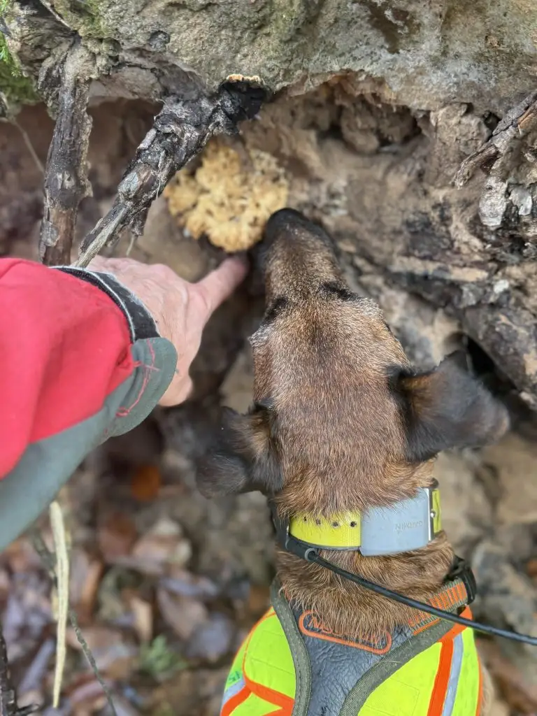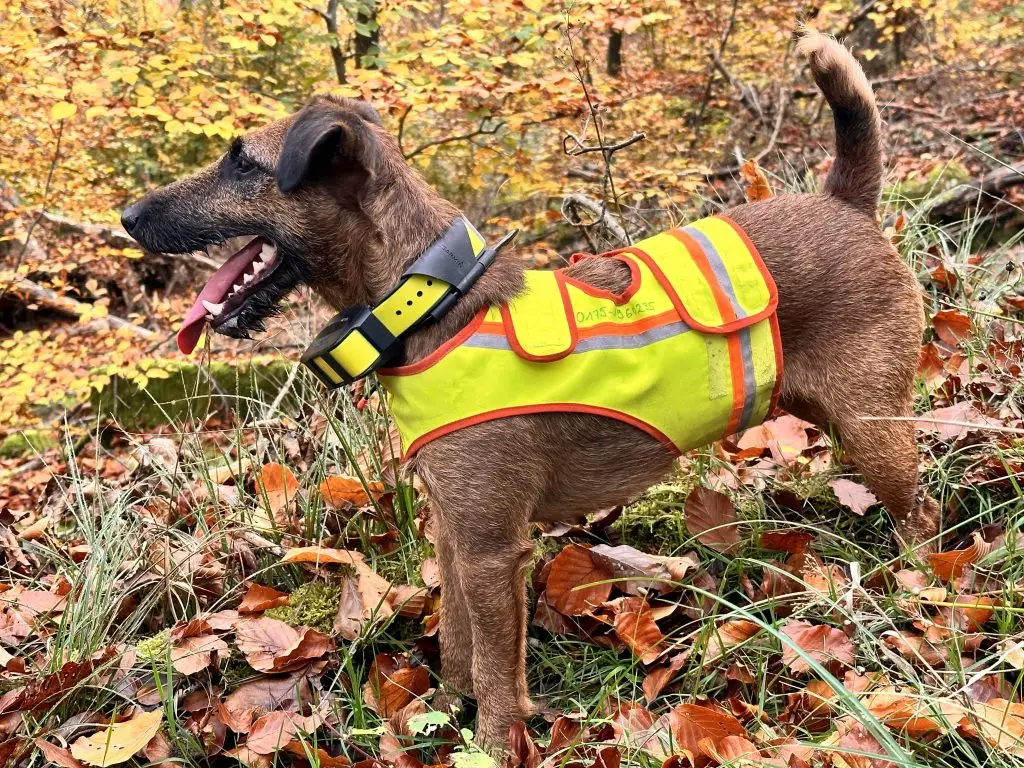 Bei der Riemenarbeit arbeitet sie konzentriert, fährtentreu und führt verlässlich bis zum Stück. Als zertifizierter ASP-Kadaversuchhund arbeitet sie zudem zielgerichtet und systematisch in der freien Suche, findet und verweist dabei sicher.